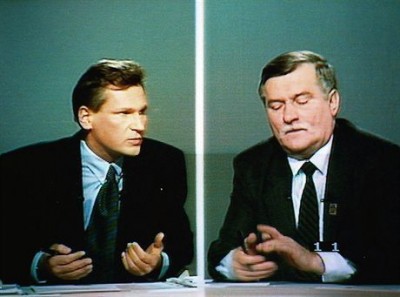 Gmach telewizji na Woronicza na pewno dawno nie przeżył takiego najazdu dziennikarzy jak podczas debat Wałęsa - Kwaśniewski. Były to pierwsze w Polsce starcia w amerykańskim stylu. I jak podczas słynnego pojedynku Kennedy - Nixon ci, co oglądali go w telewizji, uważali, że wygrał Kennedy, a słuchający w radio - że Nixon. Historia się powtórzyła, ale nie do końca: obserwatorzy debaty Kwaśniewski - Wałęsa w studio w większości byli przekonani, że padł remis, ze wskazaniem Wałęsy. Wyborcy zadecydowali inaczej: w II turze Wałęsa uzyskał 48,28 proc. głosów, Kwaśniewski - 51, 72 proc.