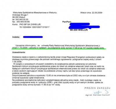 Nie przyglądałem się tym rachunkom specjalnie - ale z tego co rozumiem podniesiono wysokość zaliczki - a jak się ma to do faktycznej ceny za podgrzanie m3 wody i jak ta cena zmieniała się w okresie ostatnich 6 lat??